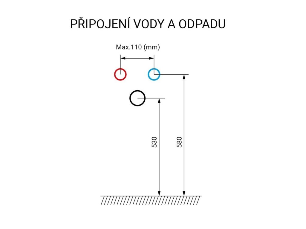 - Umyvadlo: Bílá keramika s přepadem a otvorem pro baterii