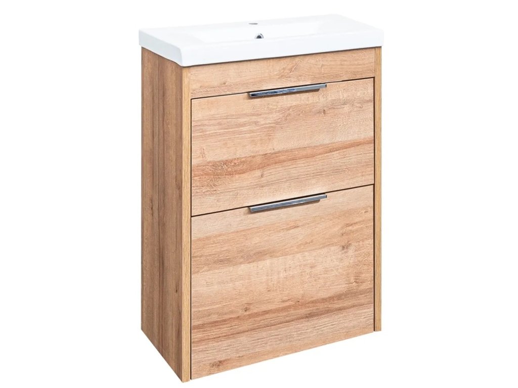 Skříňka s umývadlem 51x40 cm, bílá lesk/dub riviera