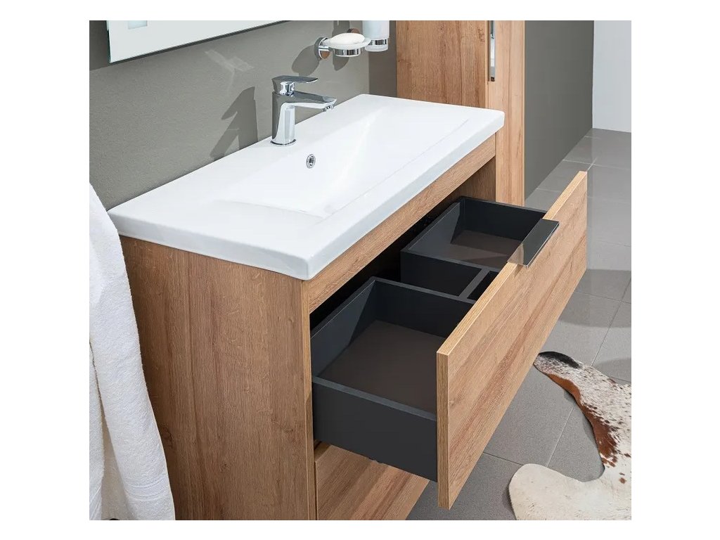 Umyvadlo: Součástí dodávky je keramické nábytkové umyvadlo o šířce 81 cm, které je dokonale sladěné se skříňkou a připravené pro okamžitou instalaci.