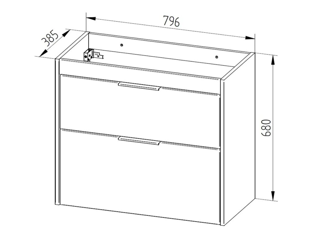 Klíčové Funkce: Úložný prostor zajišťují dvě prostorné zásuvky, které jsou vybaveny kvalitními pojezdy s technologií zpomaleného dovírání (Soft-Close). Tento systém je zárukou tichého provozu a dlouholeté spokojenosti s otevíráním. Horní zásuvka je chytře vykrojená pro umyvadlový sifon, čímž maximalizuje využitelný prostor.