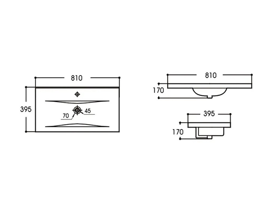 Rozměry Umyvadla: Keramické umyvadlo má šířku 81 cm, hloubku 39,5 cm a celkovou výšku 17 cm.