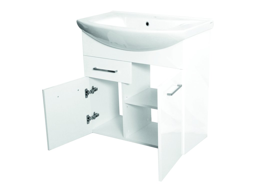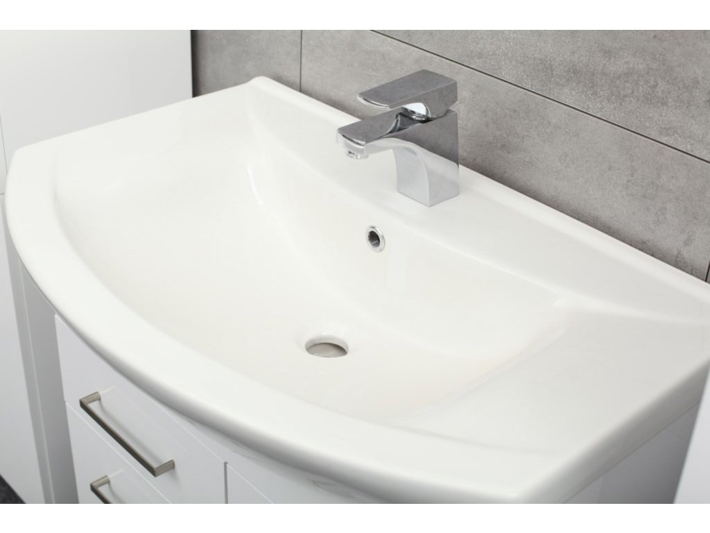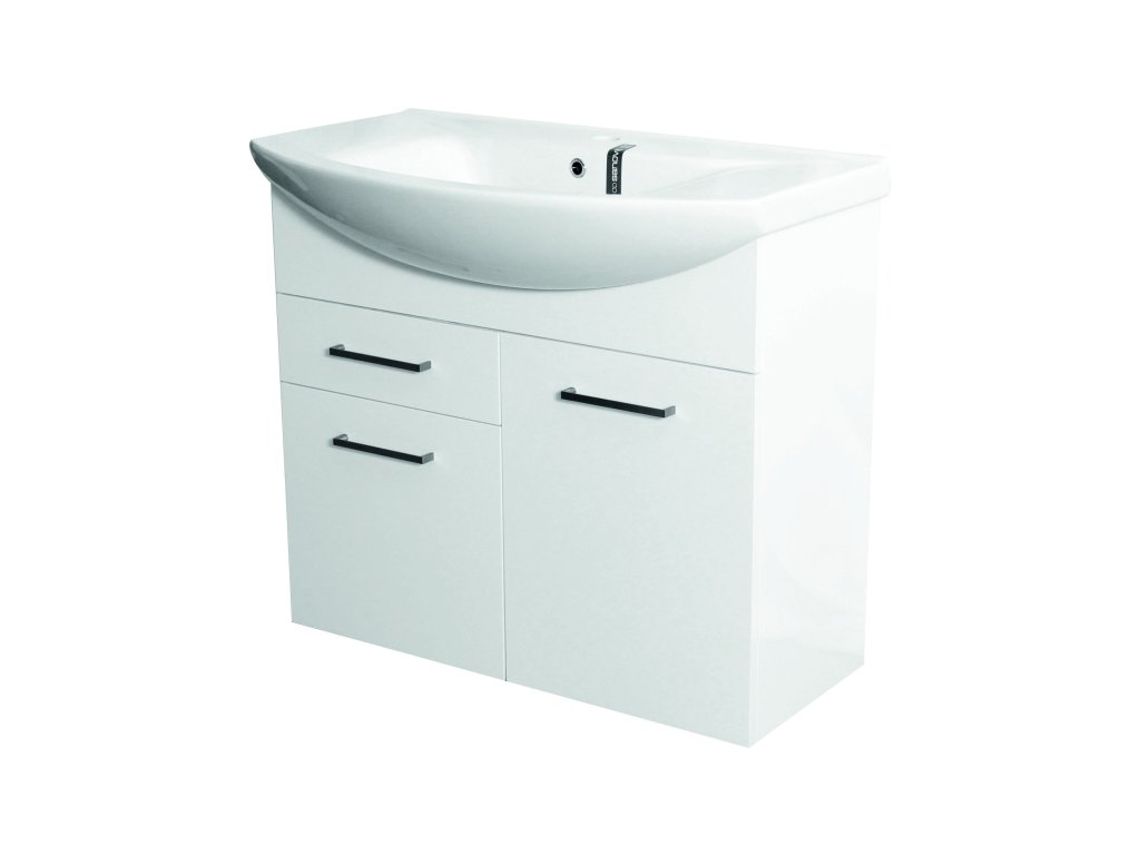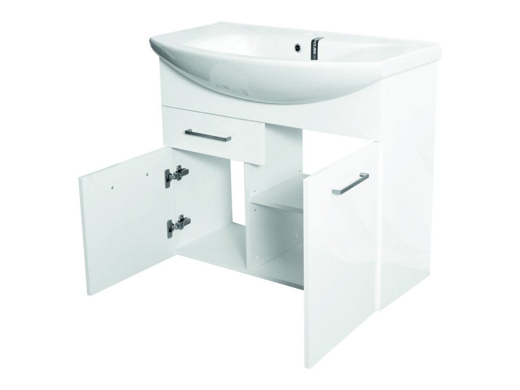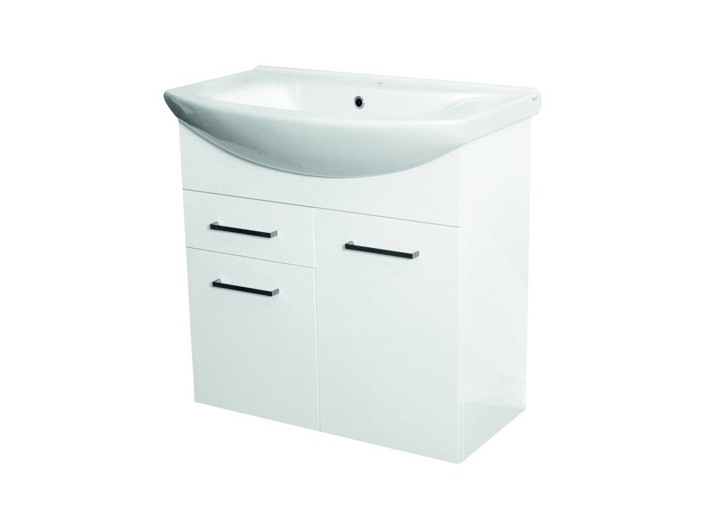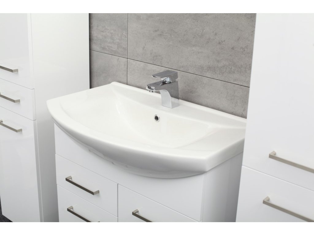 Koupelnový Set RINO Závěsná Skříňka s Keramickým Umyvadlem Soft-Close, Šířka 75 cm / 86 cm, Celolakovaná Bílá Lesklá