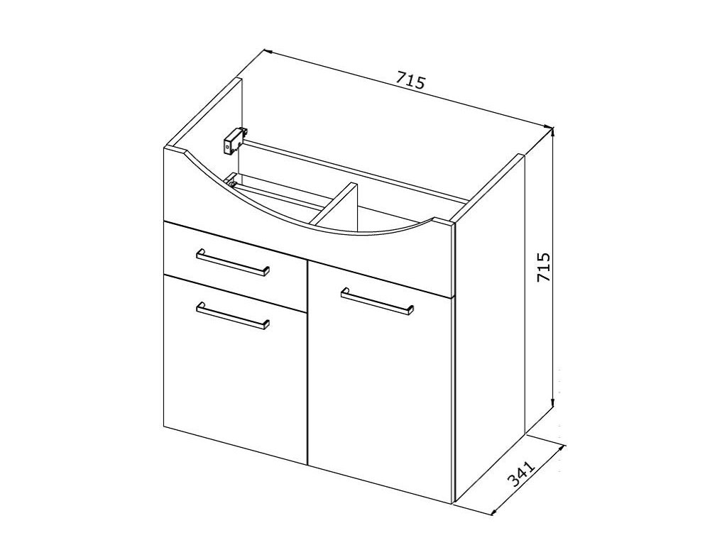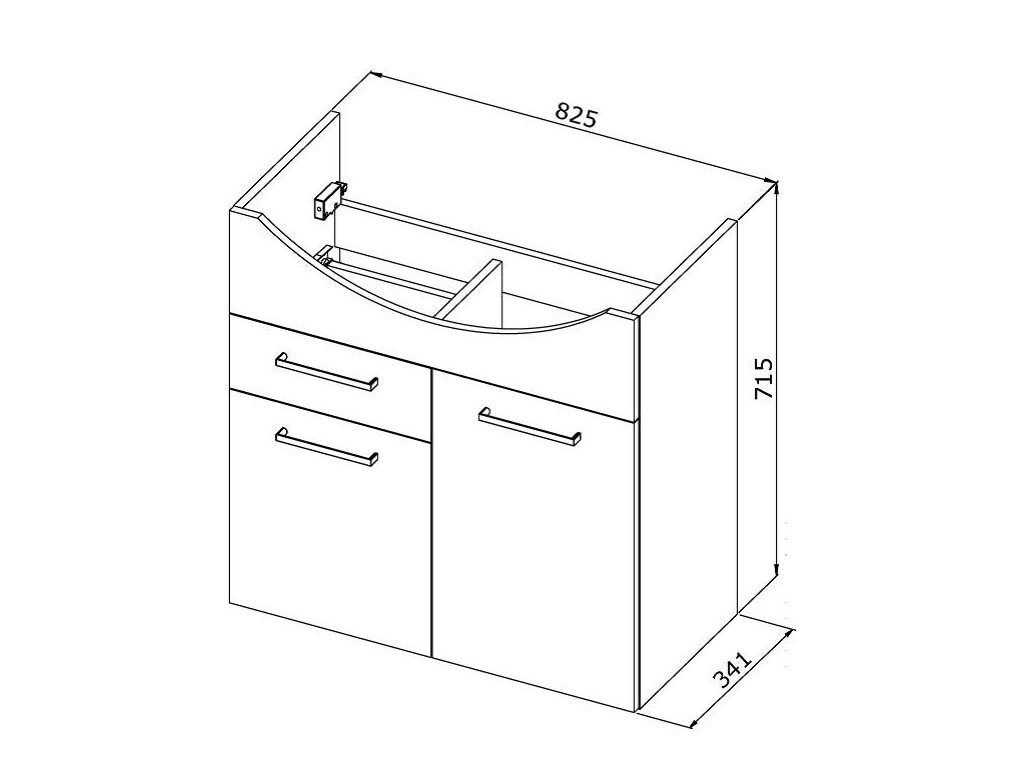 Rozměr spodní skříňky: 82,5 cm (Š) × 34,1 cm (H) × 71,5 cm (V).