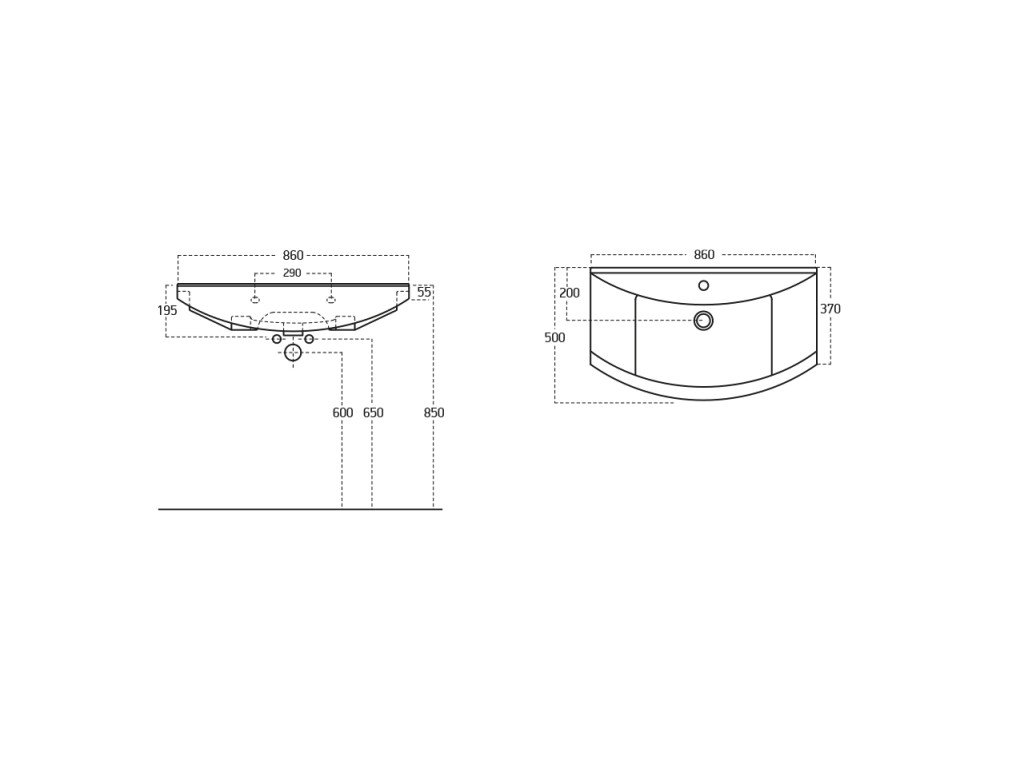 Celková šířka umyvadlové desky: 86 cm (860 milimetrů).