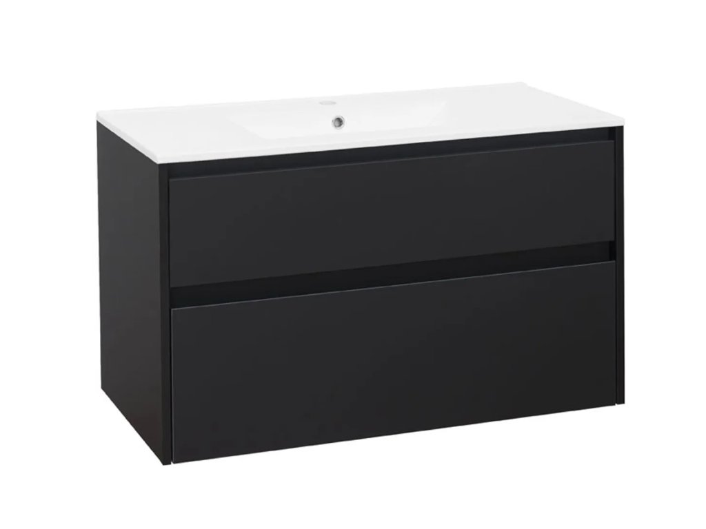 EBS Koupelnová Skříňka DUOMO Závěsná s Keramickým Umyvadlem SLIM 101x45 cm, Provedení Bílá Lesklá, 2x Zásuvka Soft-Close, Kód DUOMOSL101B
