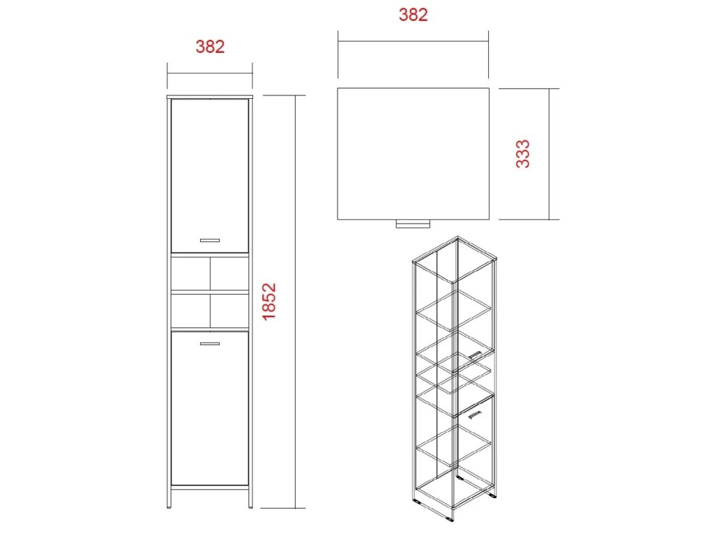 Rozměry (Š x H x V): 38,2 cm x 33,3 cm x 185,2 cm.