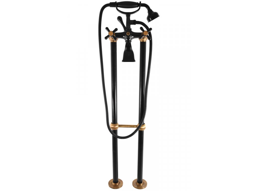 SLEZÁK RAV MORAVA RETRO Volně Stojící Vanová Baterie Kohoutková s Ruční Sprchou, Luxusní Design Černá Matná/Stará Mosaz, Výška 96,8 cm, Rozteč 15 cm