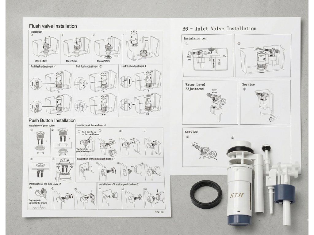 Tato kompletní splachovací souprava značky Besteco představuje nejvyšší technické a designové standardy v oblasti náhradních dílů pro sanitární keramiku. Je navržena jako ideální řešení pro opravu či modernizaci starších kombi WC. Nekompromisní kvalita zpracování ventilů zaručuje dlouhodobou těsnost a spolehlivost. Vypouštěcí ventil disponuje funkcí Dual Flush, která umožňuje volbu mezi malým (2–3 l) a velkým (6–9 l) spláchnutím, což výrazně přispívá k úspoře vody.