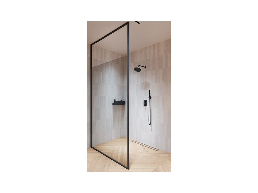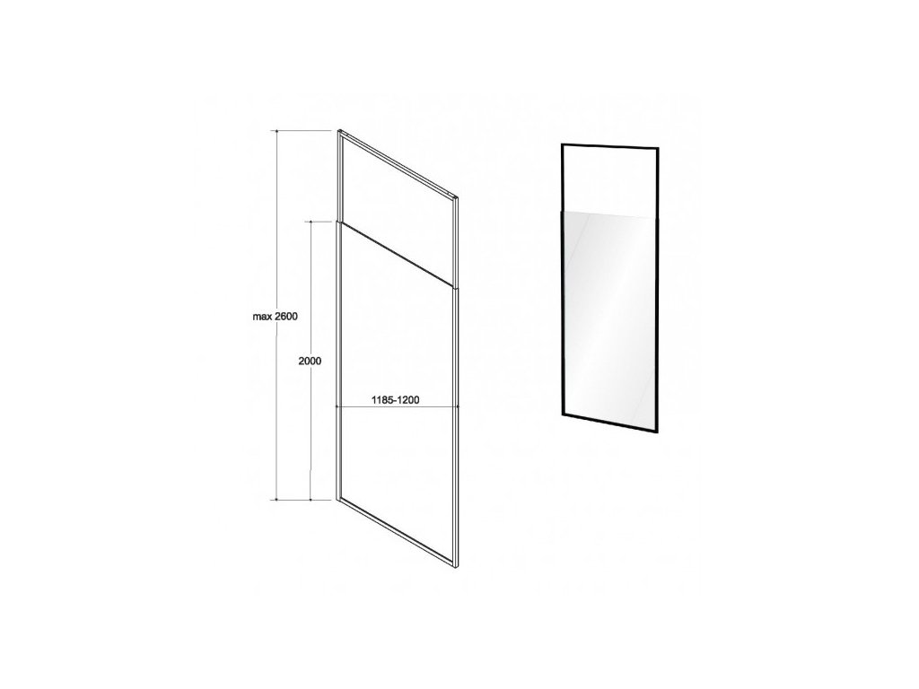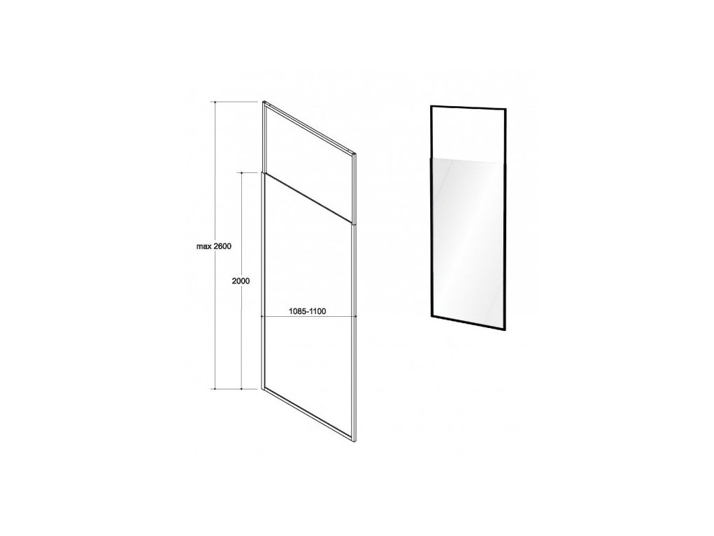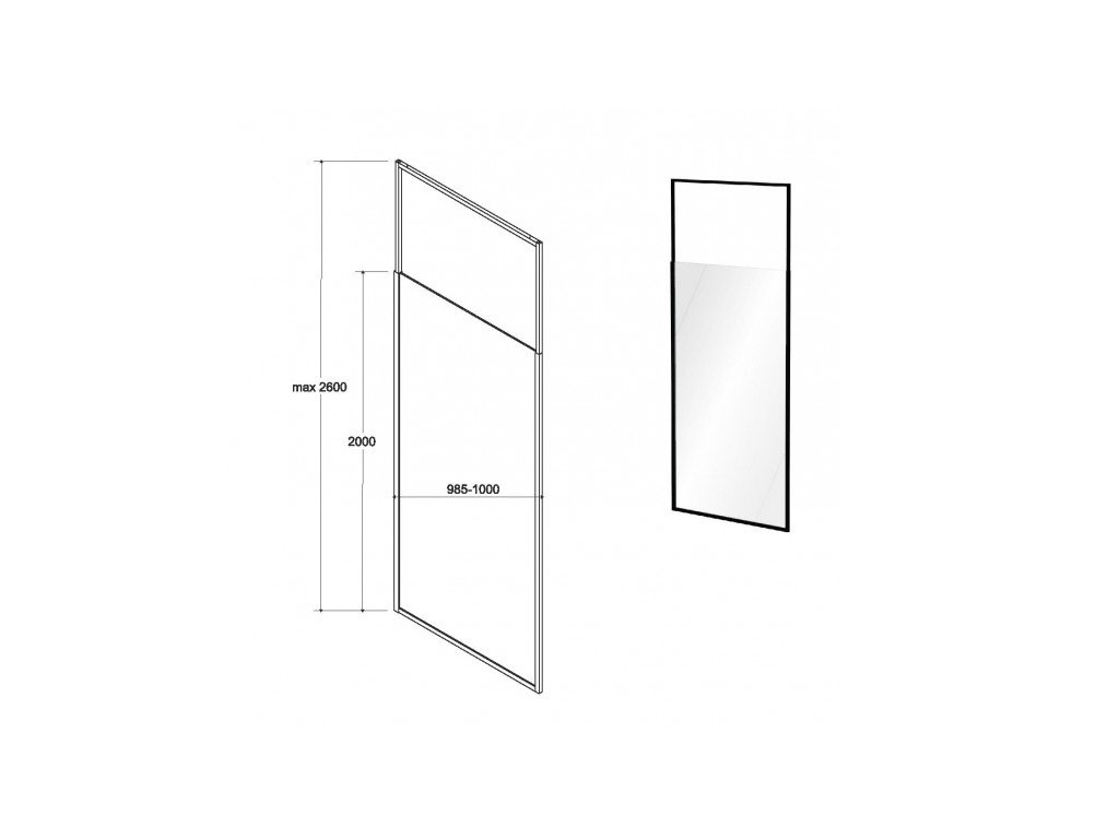 Rám pevné stěny má nastavitelnou výšku 200 až 280 cm. Bez nutnosti montáže rozpěrné tyče. Díky teleskopickému výsuvu horní hrany, je možné přichytit zástěnu do stropu.