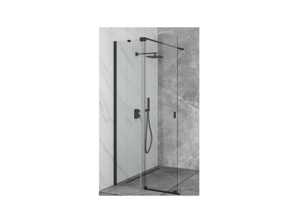 Sprchová stěna walk-in s pevným a posuvným sklem, barva černá, čiré 8 mm sklo