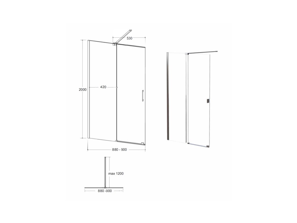 Walk-in s pevným a posuvným sklem, který je zajištěn rozpěrnou tyčí s maximální délkou 120 cm. Ve spojení s moderními odtokovými kanálky vznikne zcela bezbariérový prostor pro sprchování. Zástěny jsou vyrobeny z bezpečnostního skla o tloušťce 8 mm.