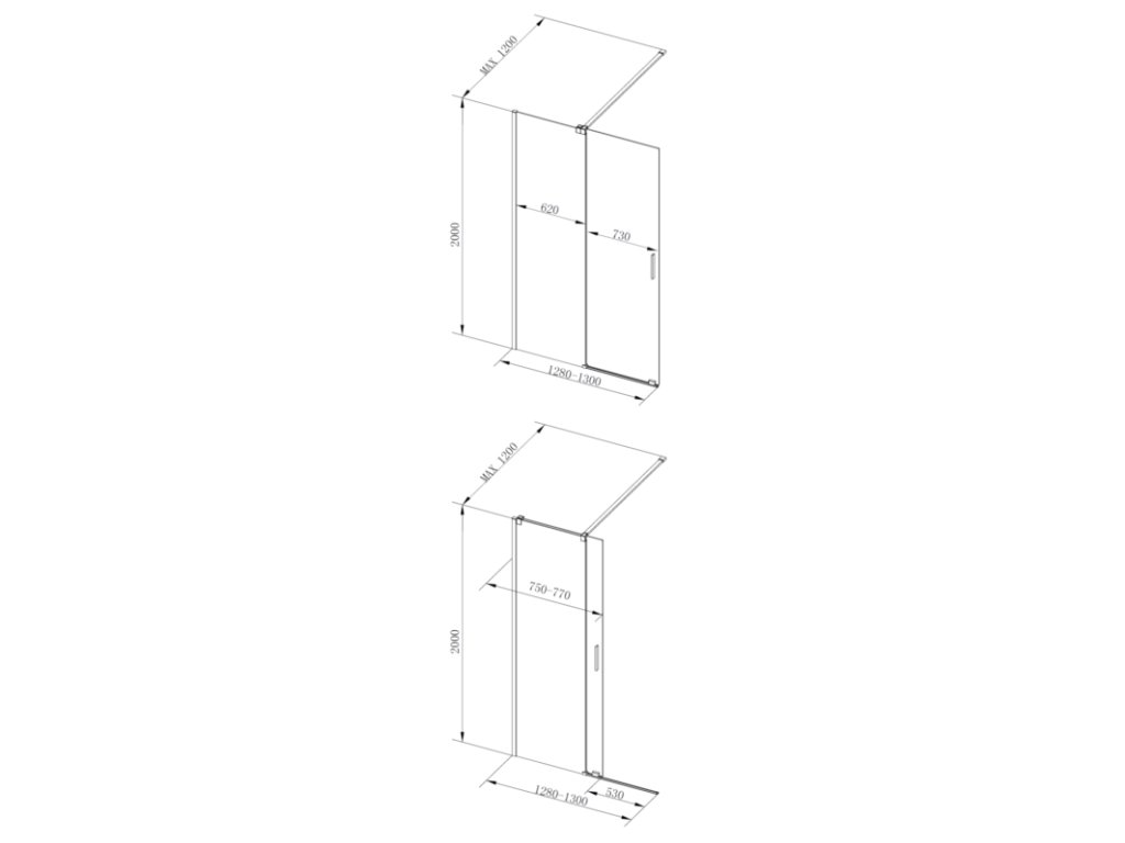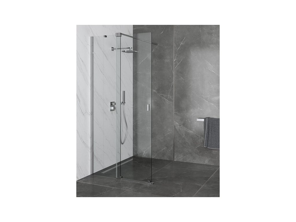 Walk-in s pevným a posuvným sklem, který je zajištěn rozpěrnou tyčí s maximální délkou 120 cm. Ve spojení s moderními odtokovými kanálky vznikne zcela bezbariérový prostor pro sprchování. Zástěny jsou vyrobeny z bezpečnostního skla o tloušťce 8 mm.