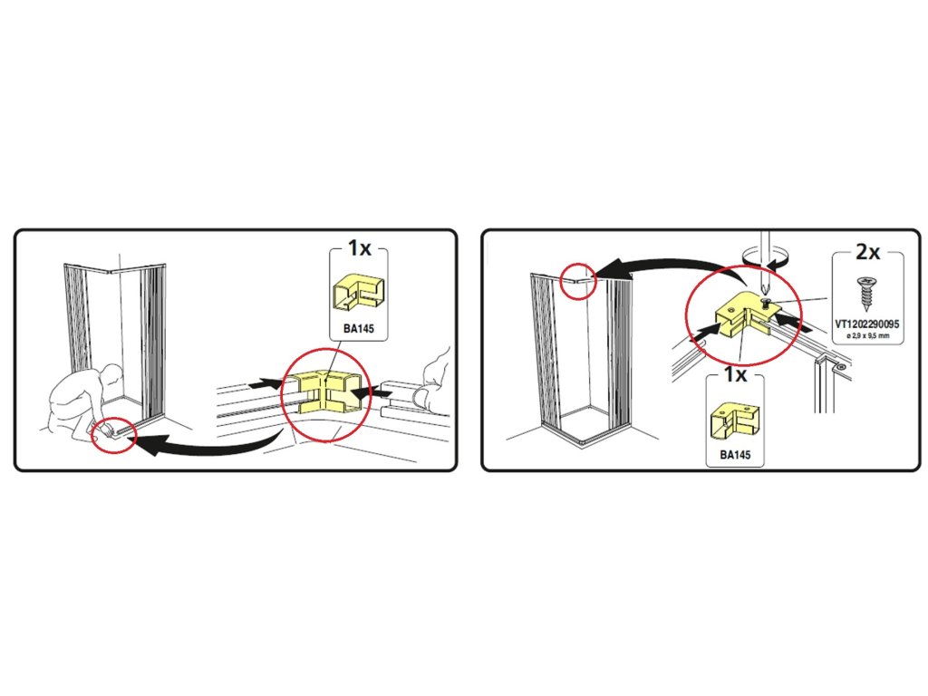 - rozměr: 80 - 60 × 185 cm, zavírání na stranu, šířka vstupu max. 51 cm