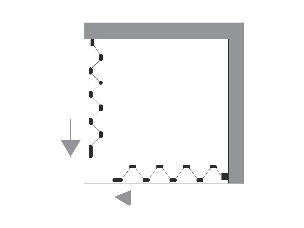 - 🚪 Typ otevírání: Shrnovací, rohový vstup (do středu)