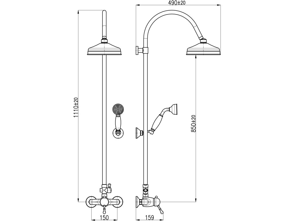 Ovládání: Páková baterie s keramickou kartuší 35 mm pro jednoduché a rychlé nastavení teploty a průtoku. Přepínač pro volbu mezi horní a ruční sprchou je řešen keramickým přepínačem umístěným na sprchové tyči.