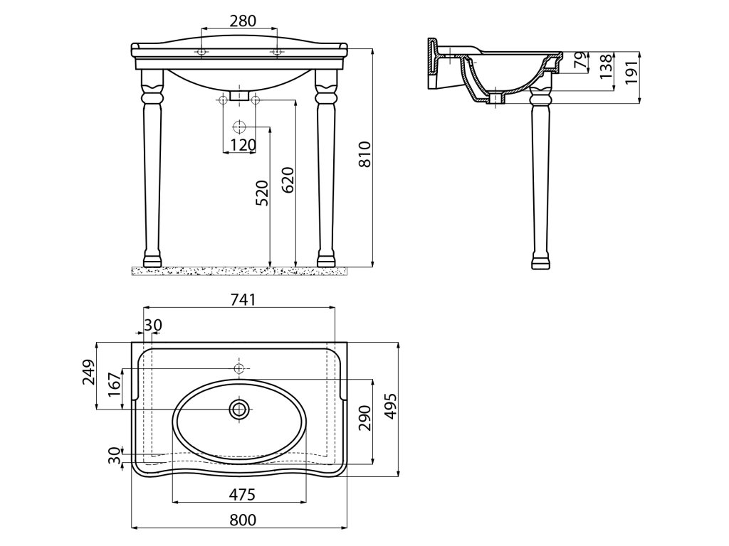 Creavit ANTIK keramické umyvadlo 80x50 cm - bílá