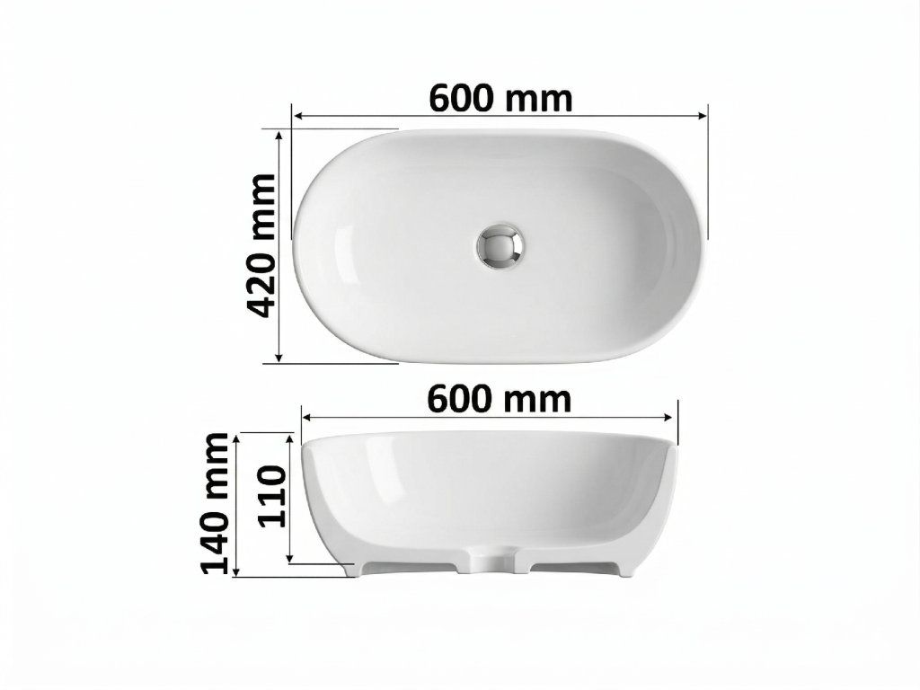 📏 Dimenze: 600 x 420 mm s hloubkou optimalizovanou pro prevenci nežádoucího rozstřiku