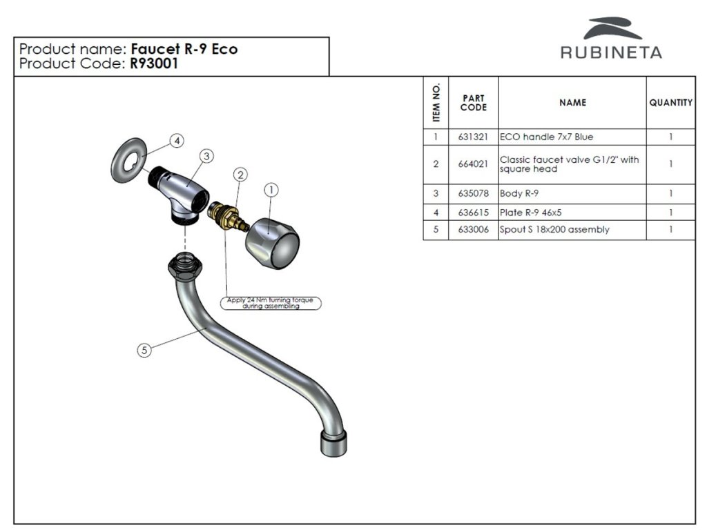 Umyvadlová, nástěnná baterie na jednu vodu R-9 ECO, chrom