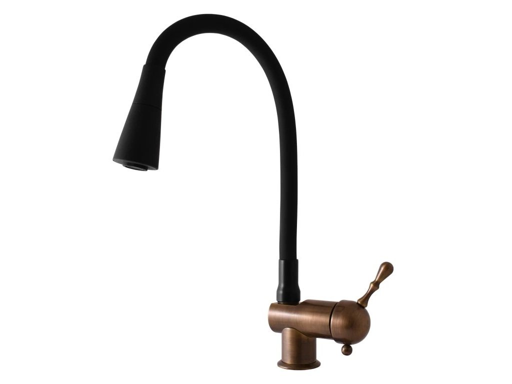 Umyvadlová/dřezová baterie s flexibilním ramínkem, Stará mosaz
