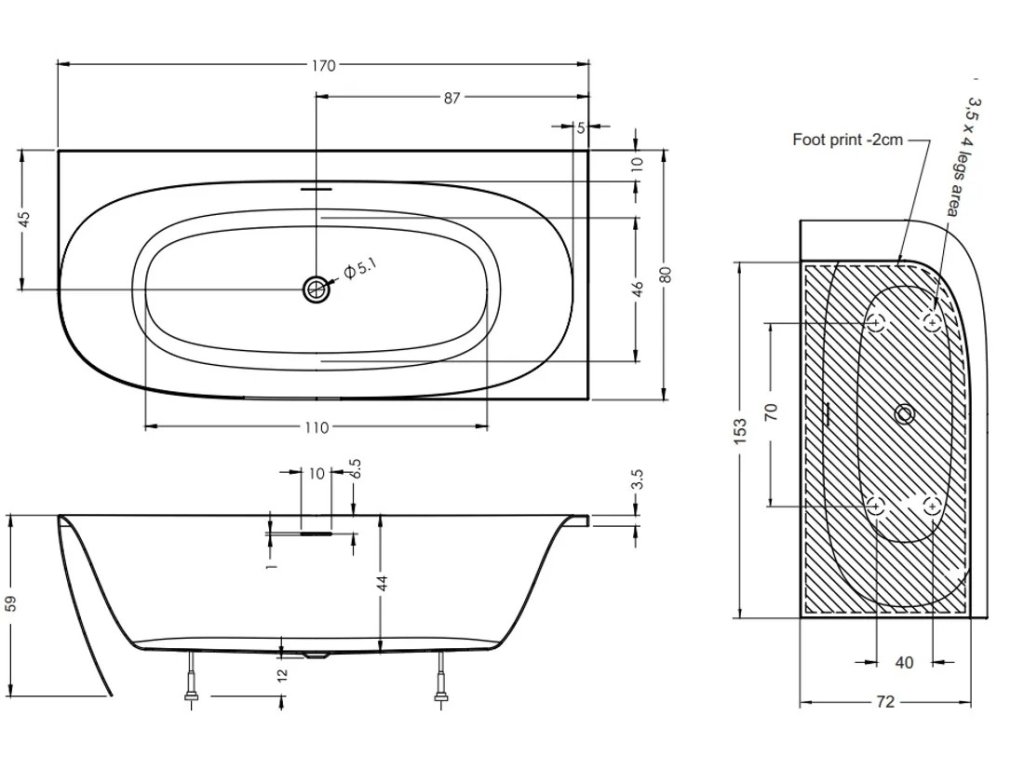 Proměňte svou koupelnu v oázu klidu s vanou EBS Diora, která přináší design volně stojících van i do menších prostor. Její asymetrický tvar a levé rohové provedení umožňuje efektivně využít každý centimetr. Vana je vyrobena z vysoce kvalitního akrylátu, který si udržuje stálou teplotu, je odolný proti poškrábání a snadno se čistí. Součástí vany je integrovaný přepad a odpadní souprava, což zajišťuje jednoduchou instalaci a dlouhou životnost. Objem vany je 250 litrů, což poskytuje dostatek prostoru pro relaxaci a odpočinek.