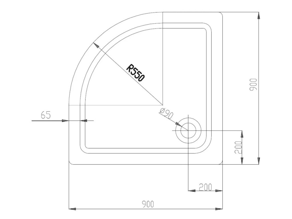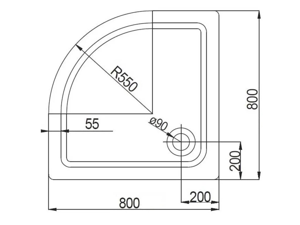 Čtvrtkruhová sprchová vanička 80x80 cm, lesklý povrch.