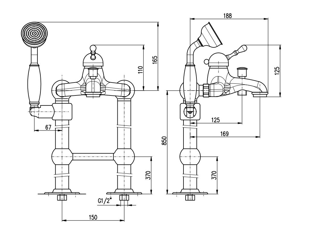 Vanová baterie Labe volně stojící, stará mosaz