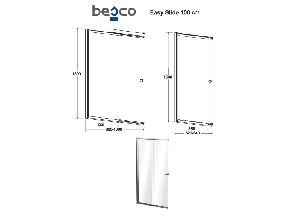 - Rozměry: 100 × 150 cm, montážní rozměr 98 - 100 cm