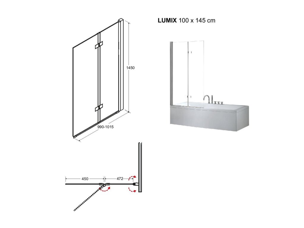 Zalamovací pantová vanová zástěna LUMIX BLACK vyniká vysoce kvalitním zpracováním a spolehlivou funkčností všech součástí a materiálů.