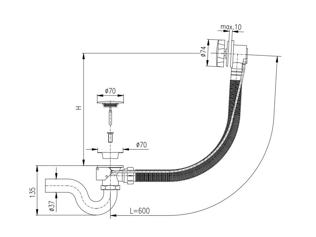 - Délka vanového sifonu 60 cm
