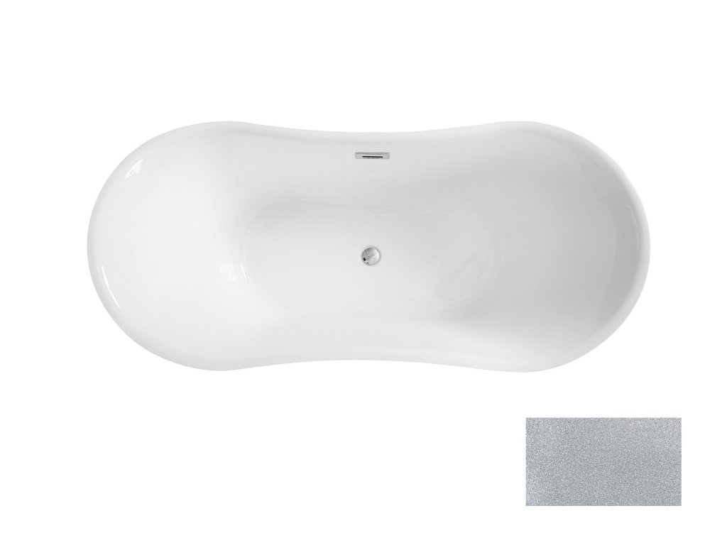 Volně stojící vana AMBER Glam stříbrná 170x80 cm, bílý sifon