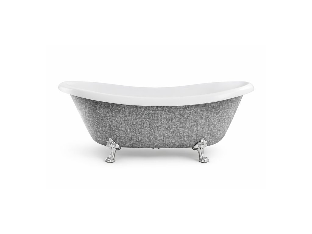 Volně stojící vana AMELIA Glam stříbrná 190x77 cm, chromové nožičky
