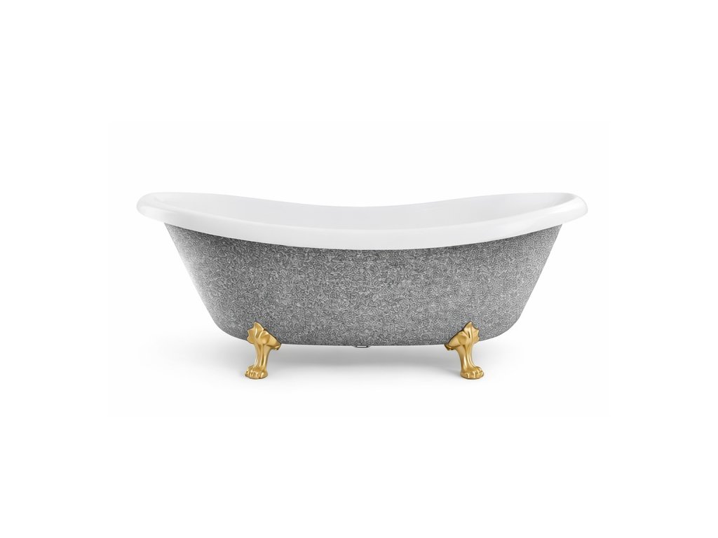 Volně stojící vana AMELIA Glam stříbrná 190x77 cm, zlaté nožičky