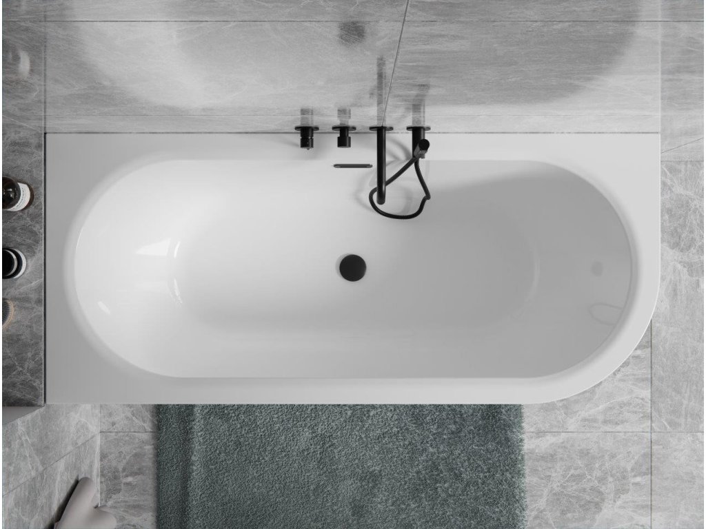 Volně stojící vana AVITA A-LINE černá/bílá 170x75 cm pravá, zlatý sifon se štěrbinovým přepadem