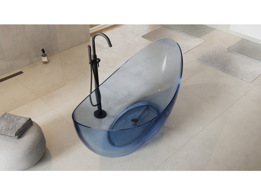 Volně stojící vana AXYA ze syntetické pryskyřice 180x80 cm, modrá, černý sifon