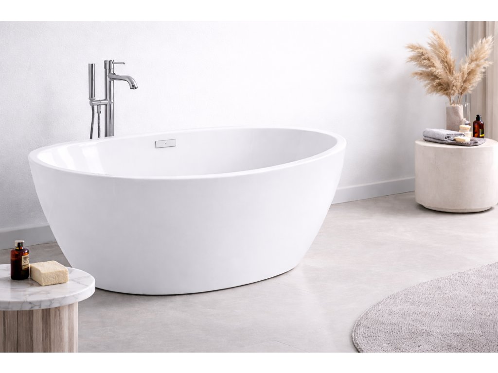 Volně stojící vana AYLA bílá 170x80 cm, bílý sifon