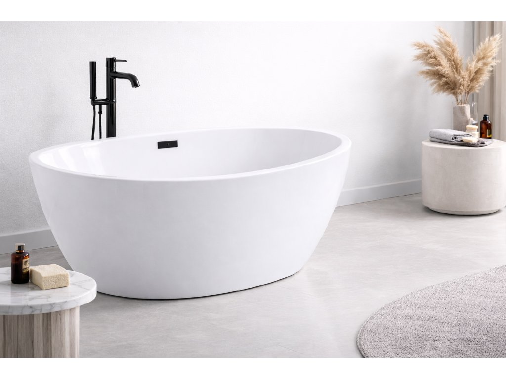Volně stojící vana AYLA bílá 170x80 cm, černý sifon