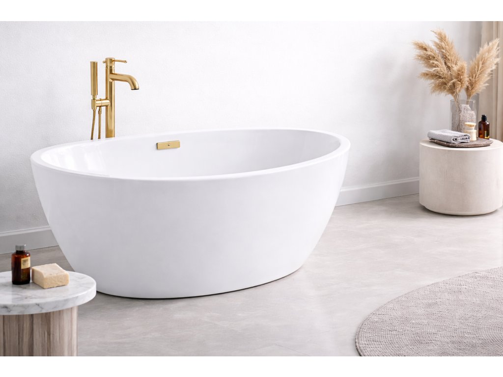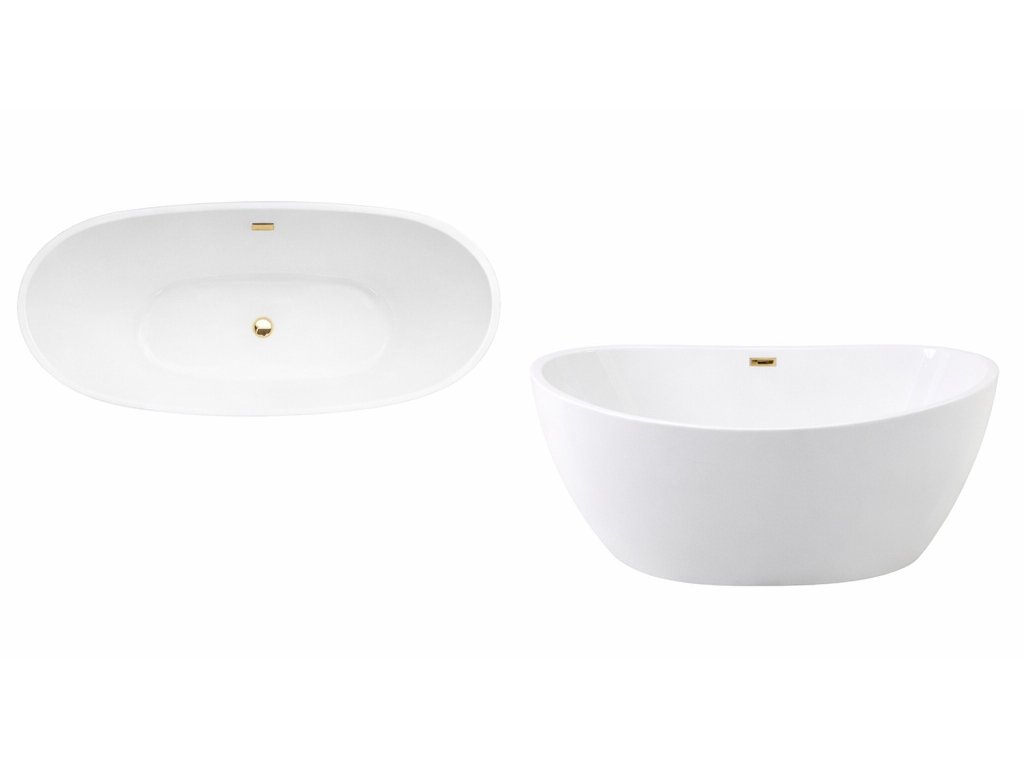 Volně stojící vana AYLA bílá 170x80 cm, zlatý sifon