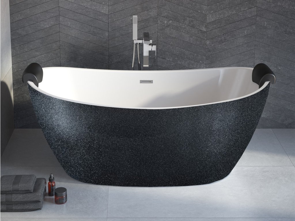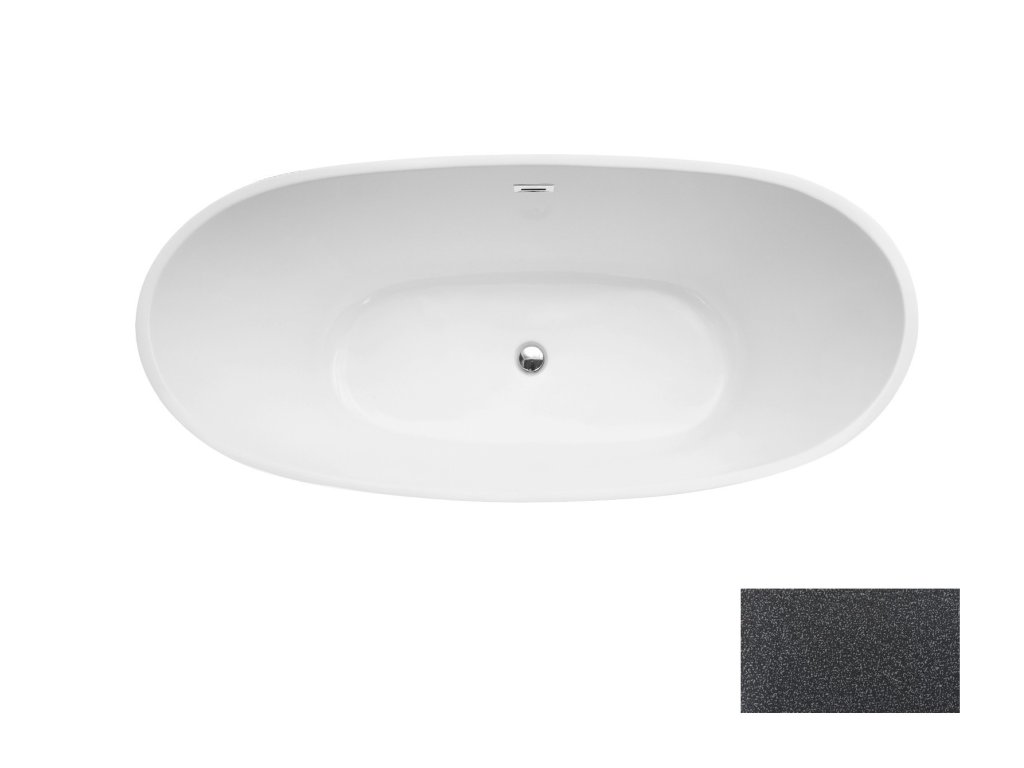 Volně stojící vana AYLA Glam grafitová 170x80 cm, grafitový sifon