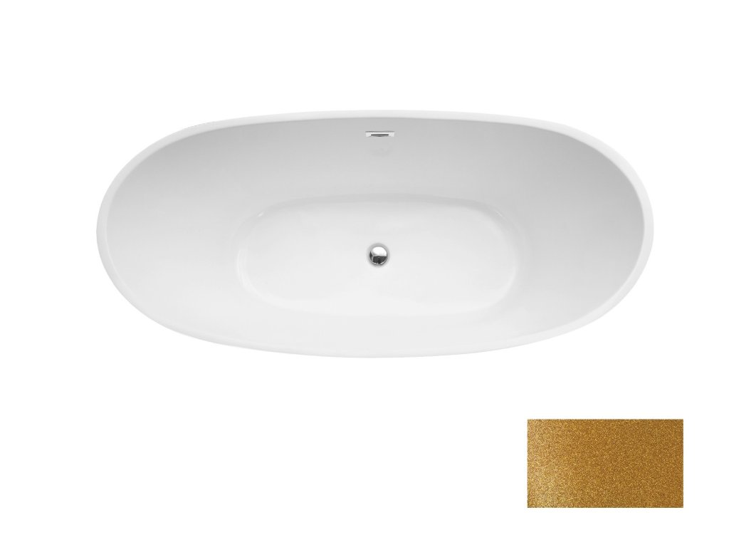 Volně stojící vana AYLA Glam zlatá 170x80 cm, bílý sifon