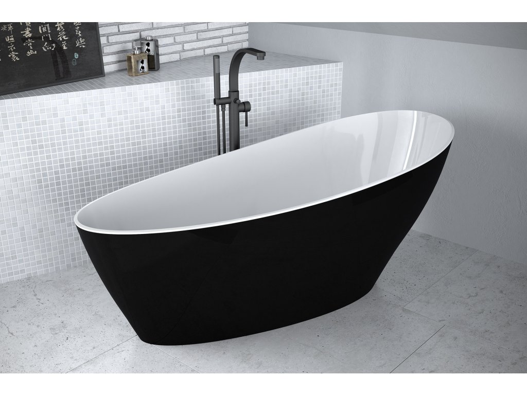 Moderní Dvoutónový Design: Vana je dokonalou ukázkou kontrastu. Černý vnější plášť dodává prostoru dramatičnost a eleganci, zatímco bílý interiér zachovává pocit čistoty a jasu.