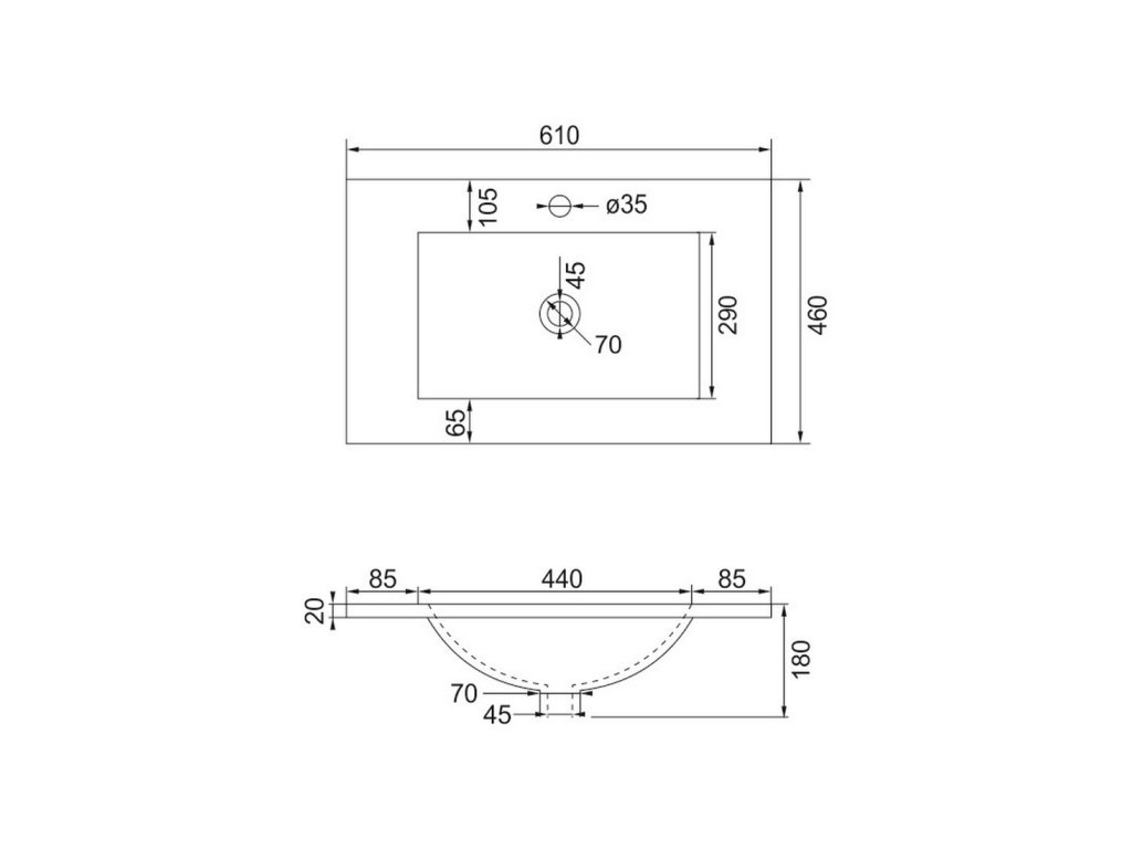 Keramické Umyvadlo Slim-Line: Skříňka je dodávána s keramickým umyvadlem v provedení Slim-Line, které svou subtilností šetří prostor a je mimořádně odolné a snadno udržovatelné.