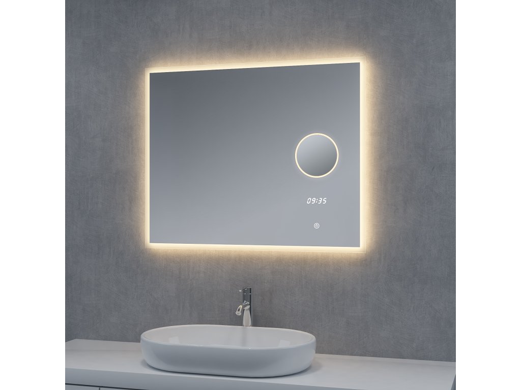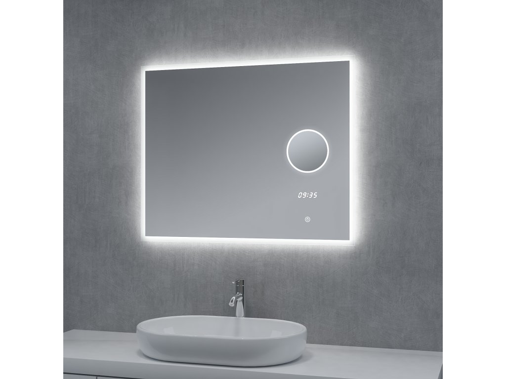 Besteco Koupelnové Chytré LED Zrcadlo BRIGHT TIME 80 x 65 cm, CCT Nastavitelná Barva (3000-6500 K), Dotykový Spínač, 5x Lupa, Digitální Hodiny, Anti-Fog Funkce Proti Zamlžování (Kód MLS6508MA-TIME-H)