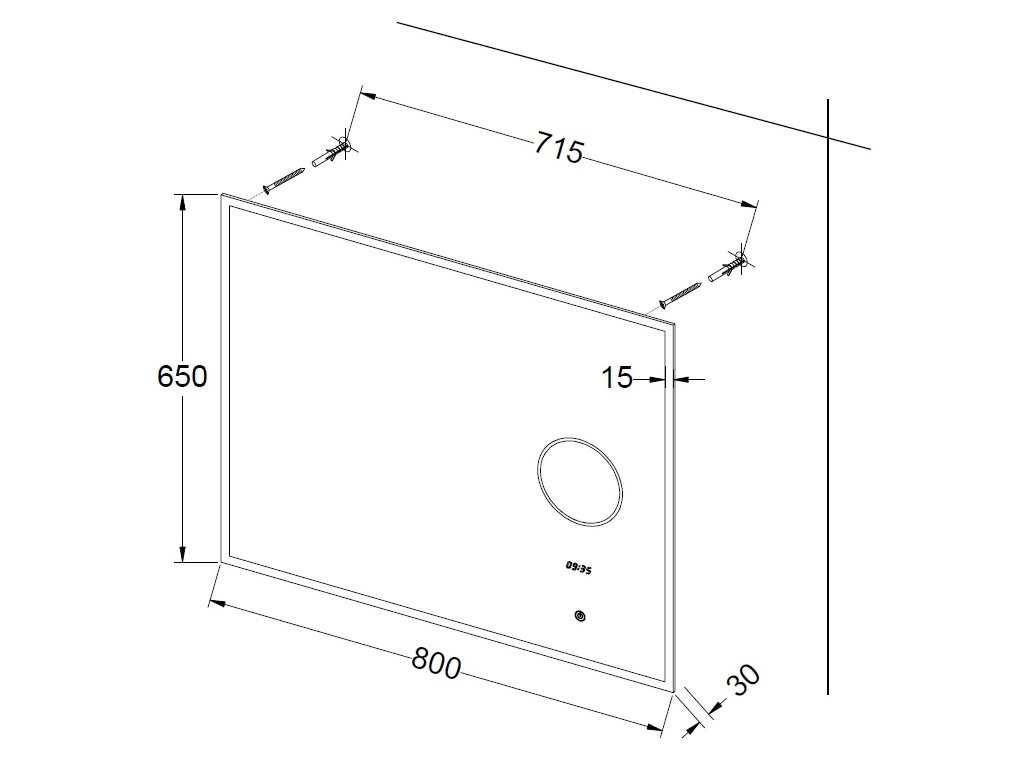 Materiály a Konstrukce: Zrcadlo je vyrobeno z vysoce kvalitního 5 mm zrcadlového skla bez mědi (copper-free), které minimalizuje riziko koroze hran. Zrcadlové sklo je opatřeno bezpečnostní fólií. Rám je zhotoven z odolného eloxovaného hliníku, který zajišťuje stabilní konstrukci a elegantně tenkou hloubku pouhých 3 cm.
