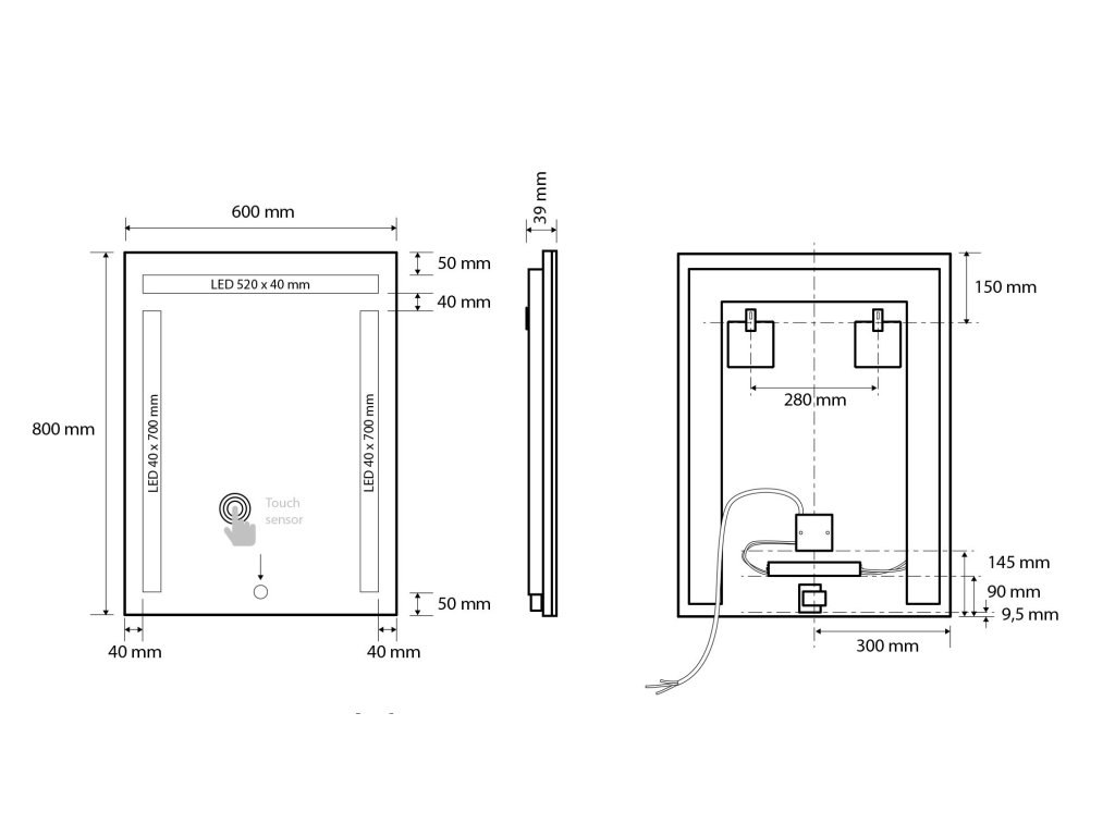 Ovládání: Zapomeňte na nevzhledné vypínače. Zrcadlo se ovládá maximálně intuitivně a stylově pomocí integrovaného dotykového senzoru (Touch Senzor), který je diskrétně umístěn přímo na ploše zrcadla. Lehký dotyk prstu stačí k aktivaci osvětlení.